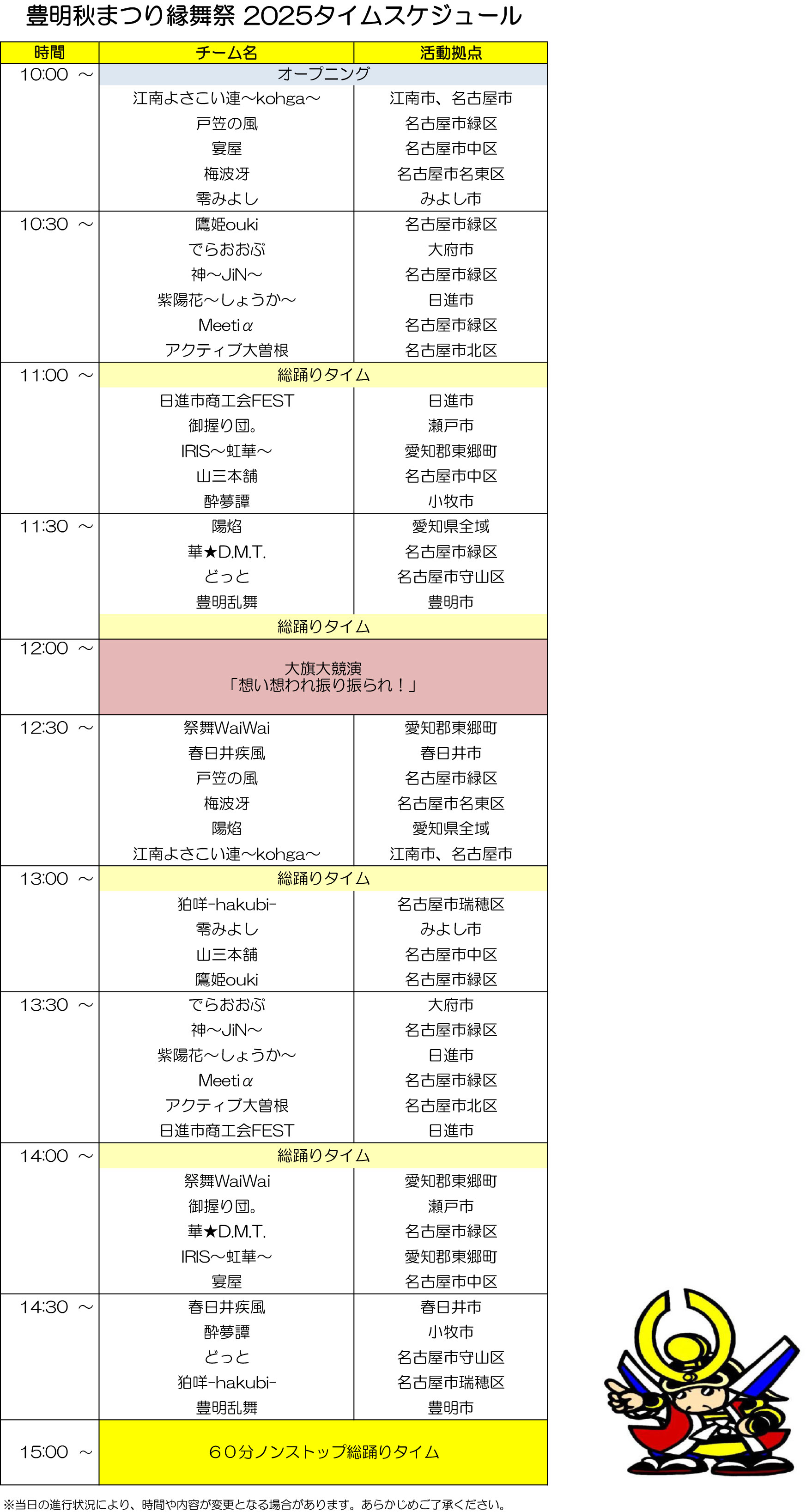 愛知県内から23団体が参加決定! (印刷版タイムスケジュールのダウンロードは